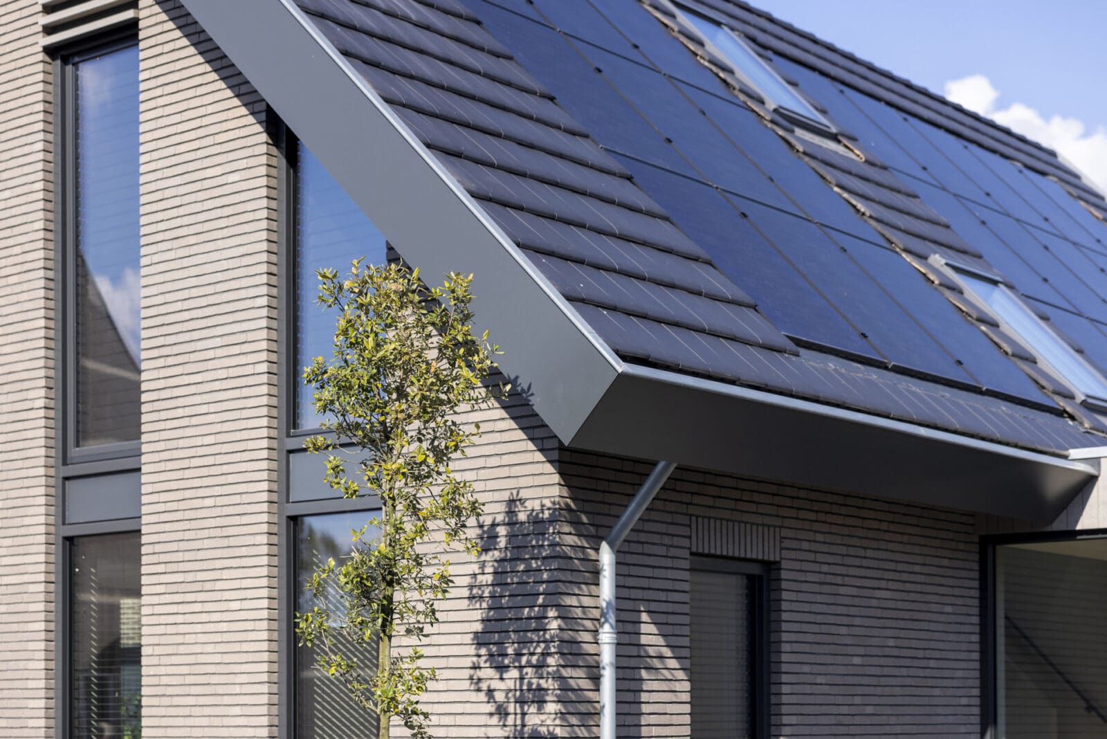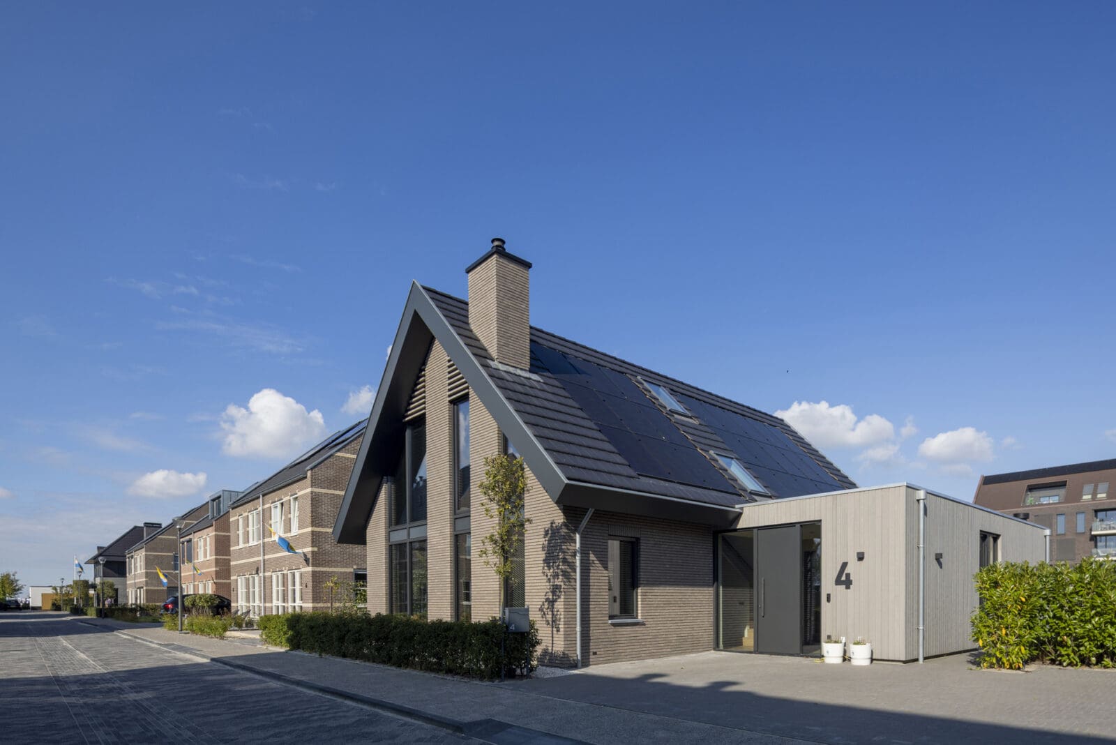 Modern vormgegeven woonhuis in baksteen met pannendak